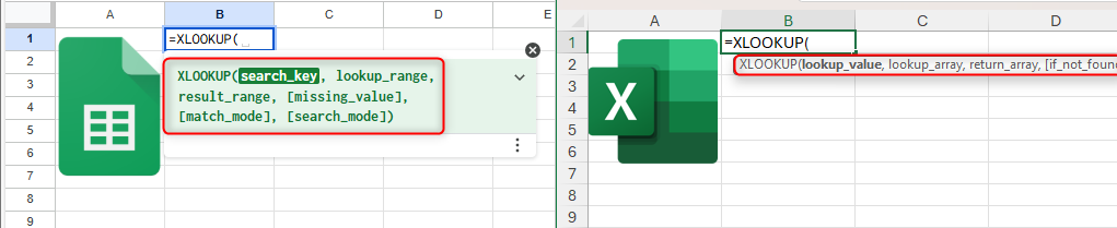 Google sheet And Microsoft Excel Want to help you when you are typing the formula. Actually, as soon as you type the opening brackets, both shows pop-up tips with syntax of program function.