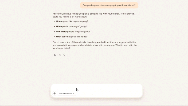 “This mode will match your tone in a real conversation, add your perspective, and maybe be a little funnier than people expect,” says Andreu. “It’s also going to challenge you, so it’s not going to agree with everything you say.” Actual conversation won’t be the default mode, it’ll just be another mode that you select in the dropdown menu, and it’s also limited to text only and not CoPilot’s voice mode.