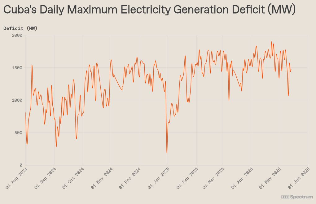 Reducing blackout is three systemic problems: year of insufficient investment, substandard fuel, and deferred maintenance. Cuba’s aging thermal power plant – the backbone of the system, which walks on almost all crude oil or fuel oil – are becoming less reliable, and should be well -run below the capacity due to fuel deficiency and rust. One of the largest, 330-Magawat Antonio Guitrus plant, often breaks down, because there are not enough replacement parts to fix it. Other features have been killed with adverse events, such as 2022 fire in Lidio Ramon Perez (Felton) and Meximo Gomez (Marrial) thermal plants. During the first five months of 2025, only 34 percent of the capacity of all power plants of Cuba based on 2023 numbers was available on average daily basis.