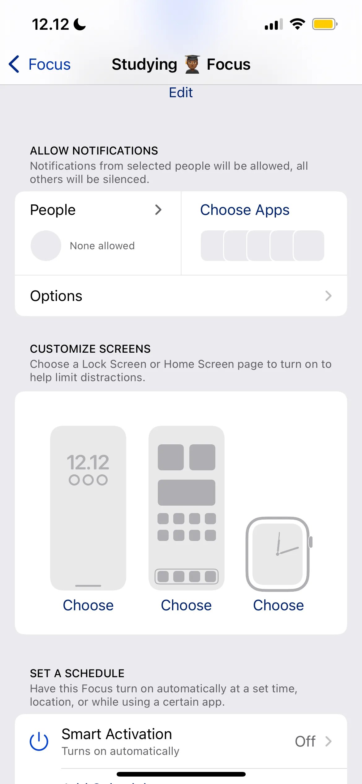 Another cool feature is that I can set deep focus session directly with the Opal app in my focus mode settings. It becomes much easier than going to the Opal app and turning on itself. I could also add other filters, such as calendars – but I have not found it necessary personally.