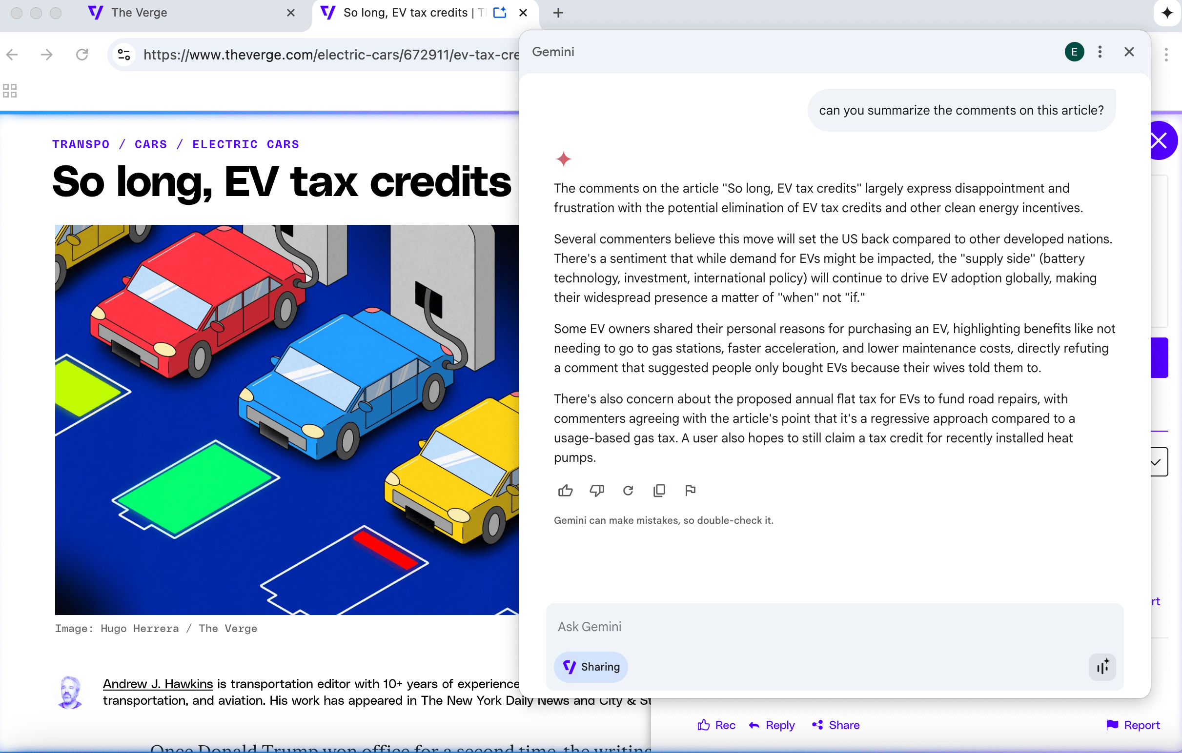 But Gemini only on your screen, “can see”, so I found that if you want it to summarize some elements, like, like RuckusComment section, you will need to make it visible before the chatbot provides a response. When you switch the tab, Gemini will still follow you, but it can only draw information from one at a time.